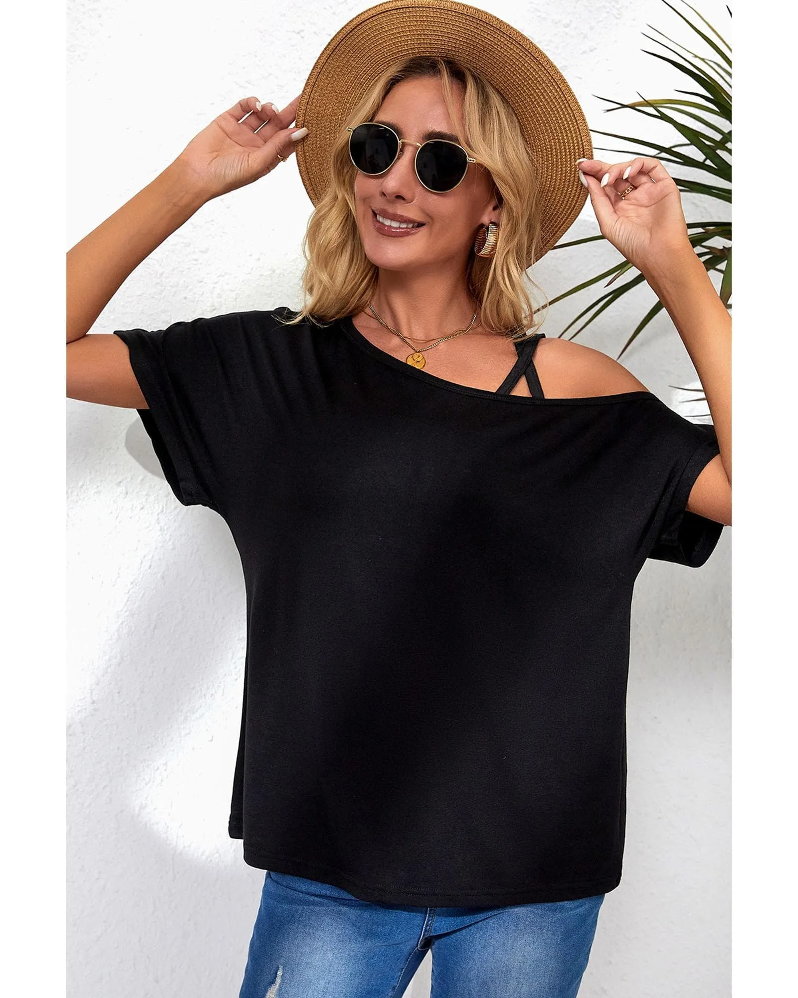 Azura Exchange Criss Cross One Shoulder T Shirt (X-Large, Azura Exchange)