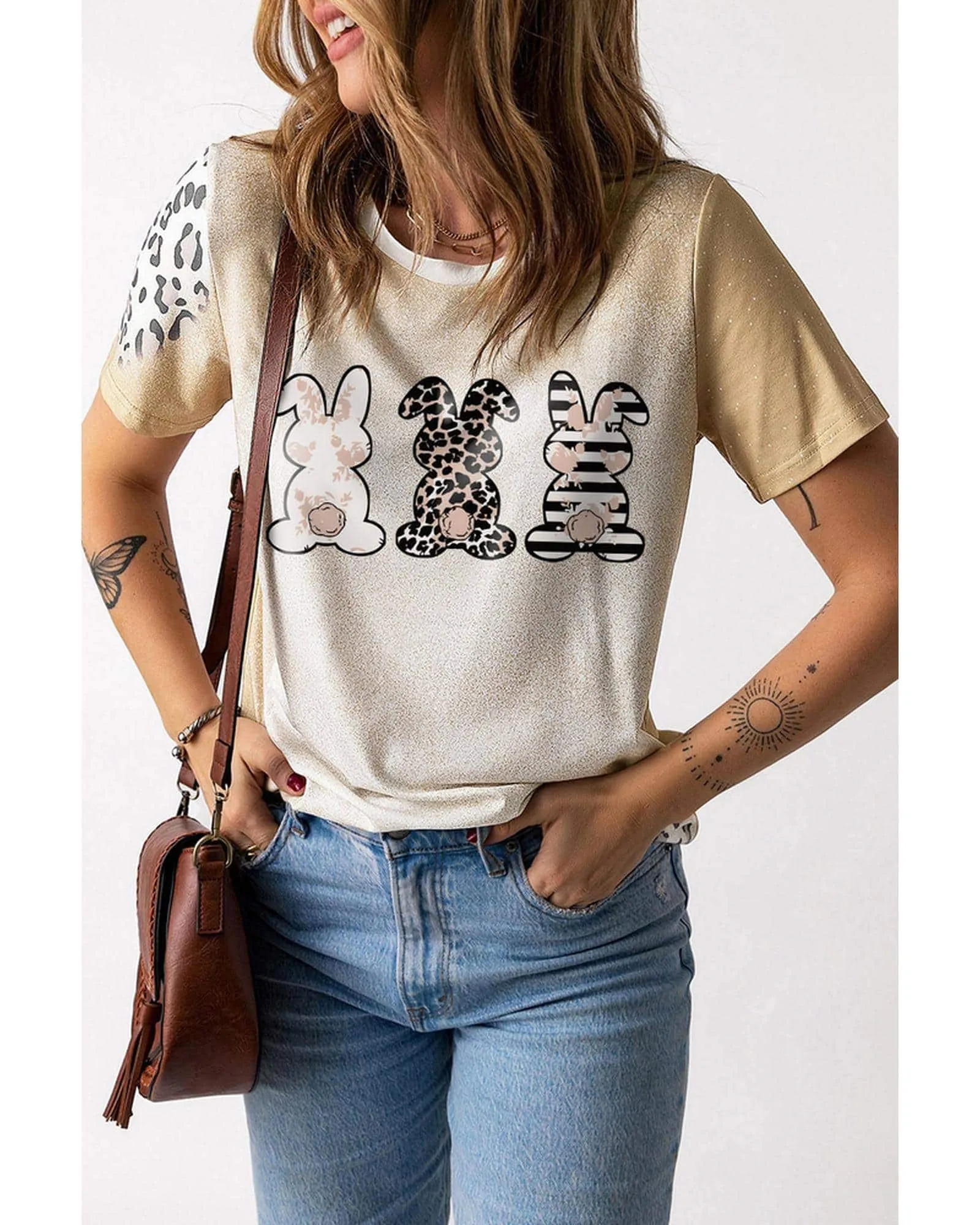 Azura Exchange Easter Bunny Leopard Bleached Print Graphic Tee (Medium, Azura Exchange)