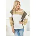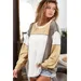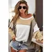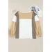 _product_id: 607894- Stylish and trendy Khaki Exposed Seam Color Block Patchwork Top