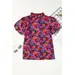 Azura Exchange Floral Print Puff Sleeve Blouse (Multicolor, Small, Azura Exchange)
