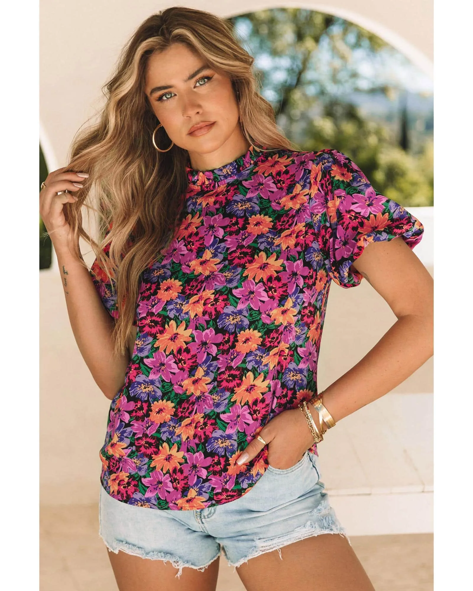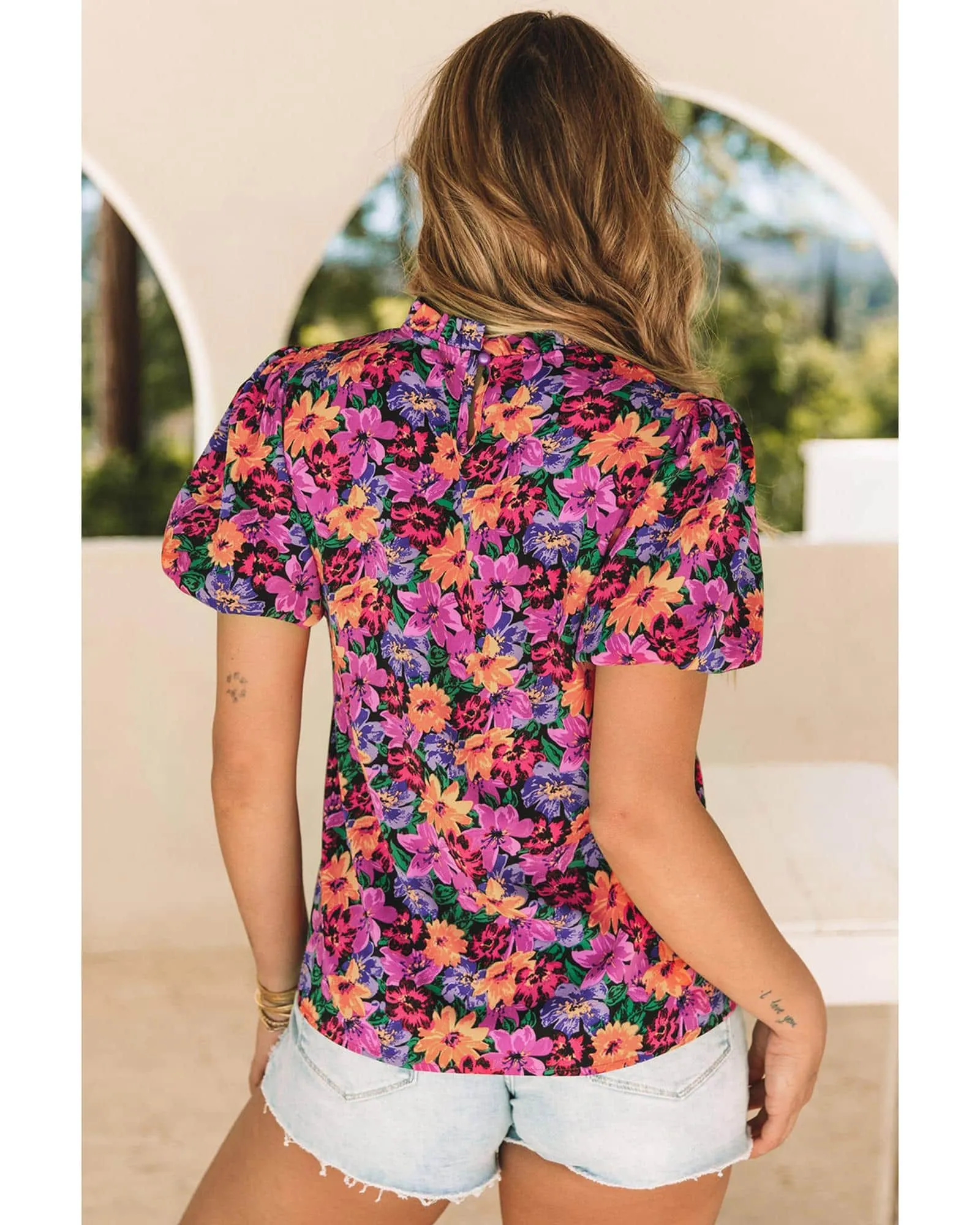 _product_id: 621344- Stylish and feminine Puff Sleeve Floral Blouse