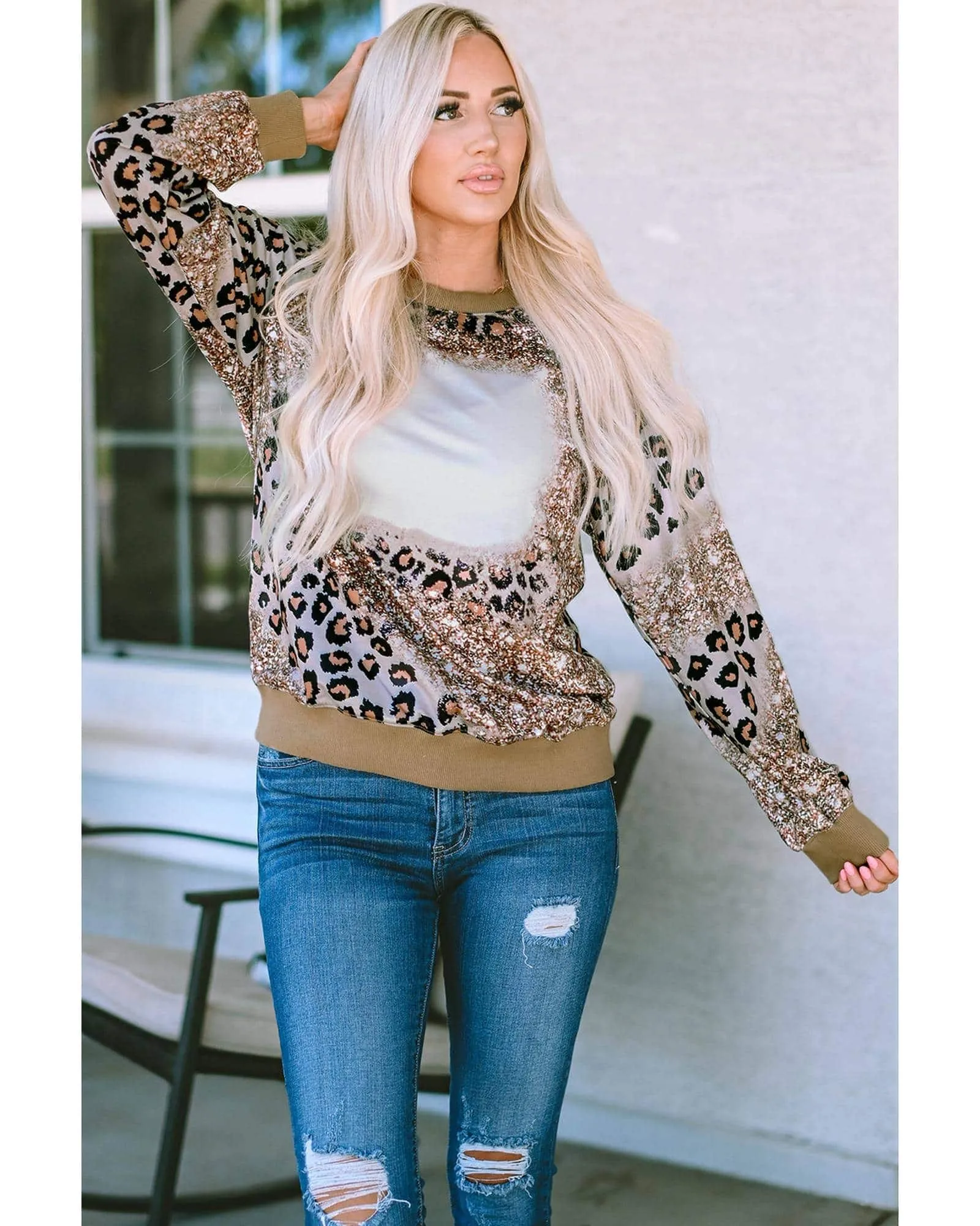 _product_id: 608489- Trendy Round Neck Leopard Long Sleeve Top