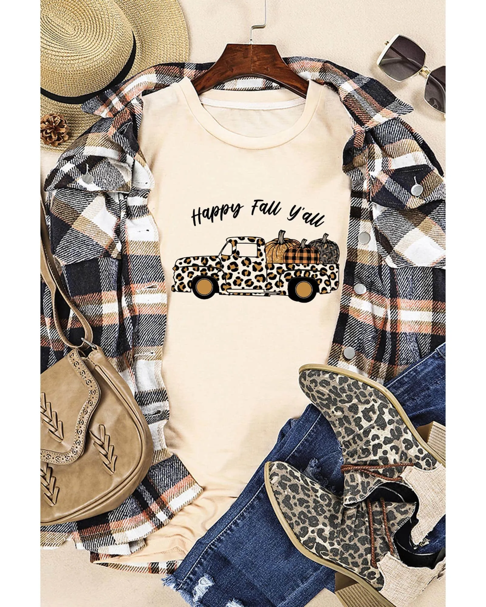 Azura Exchange Leopard Truck Pumpkin Graphic Tee - Khaki (Medium, Azura Exchange)