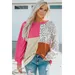 Azura Exchange Patchwork Ribbed Long Sleeve Top (Rose, Medium, Azura Exchange)