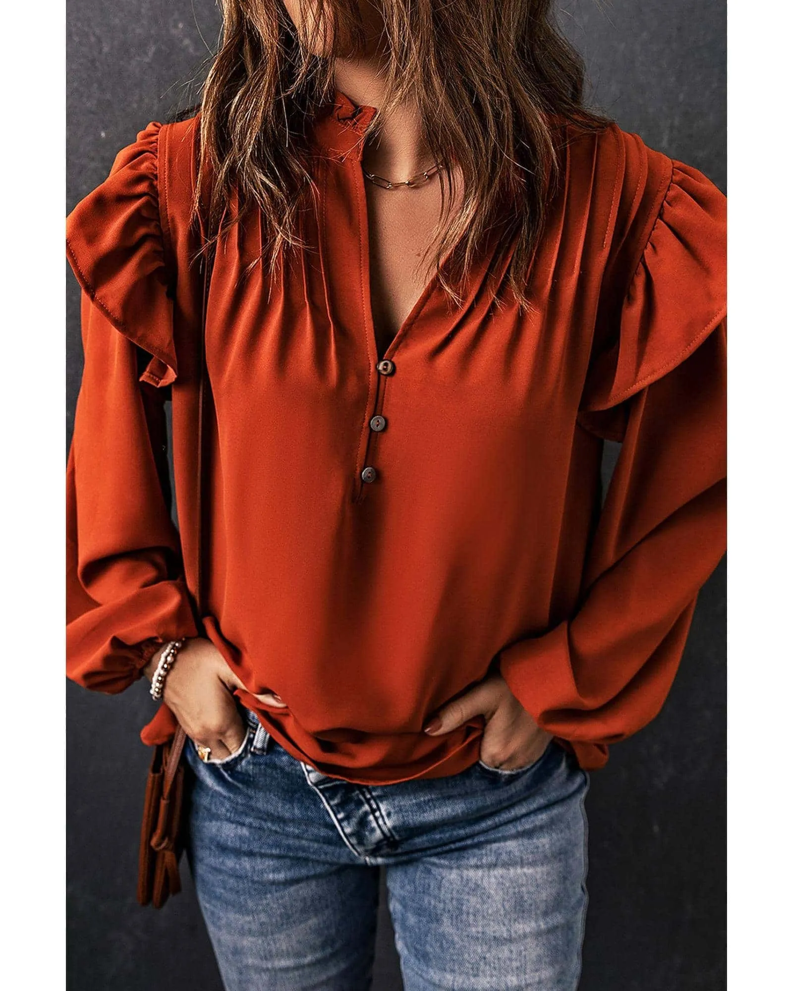 - Buttoned V-neckline