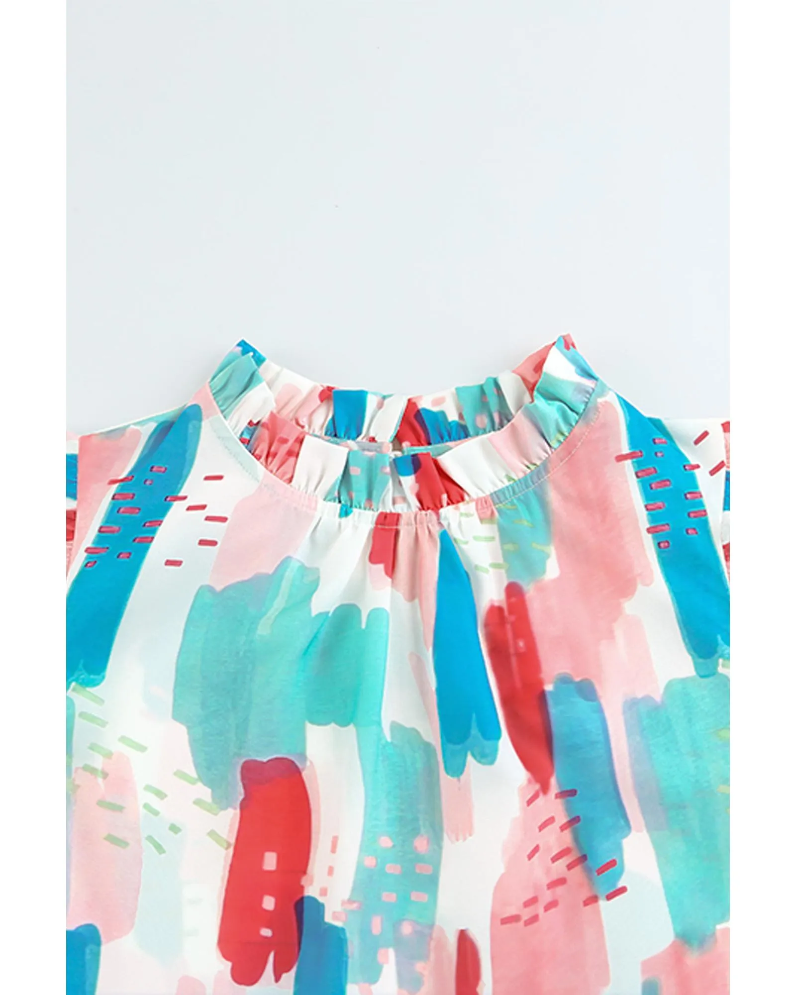 - Mock neck design with ruffled detailing