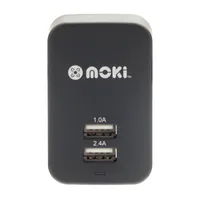 Charge two devices at the same time with the Moki Dual USB Wall Charger. 17W 3.4A output allows rapid recharge of high capacity devices.