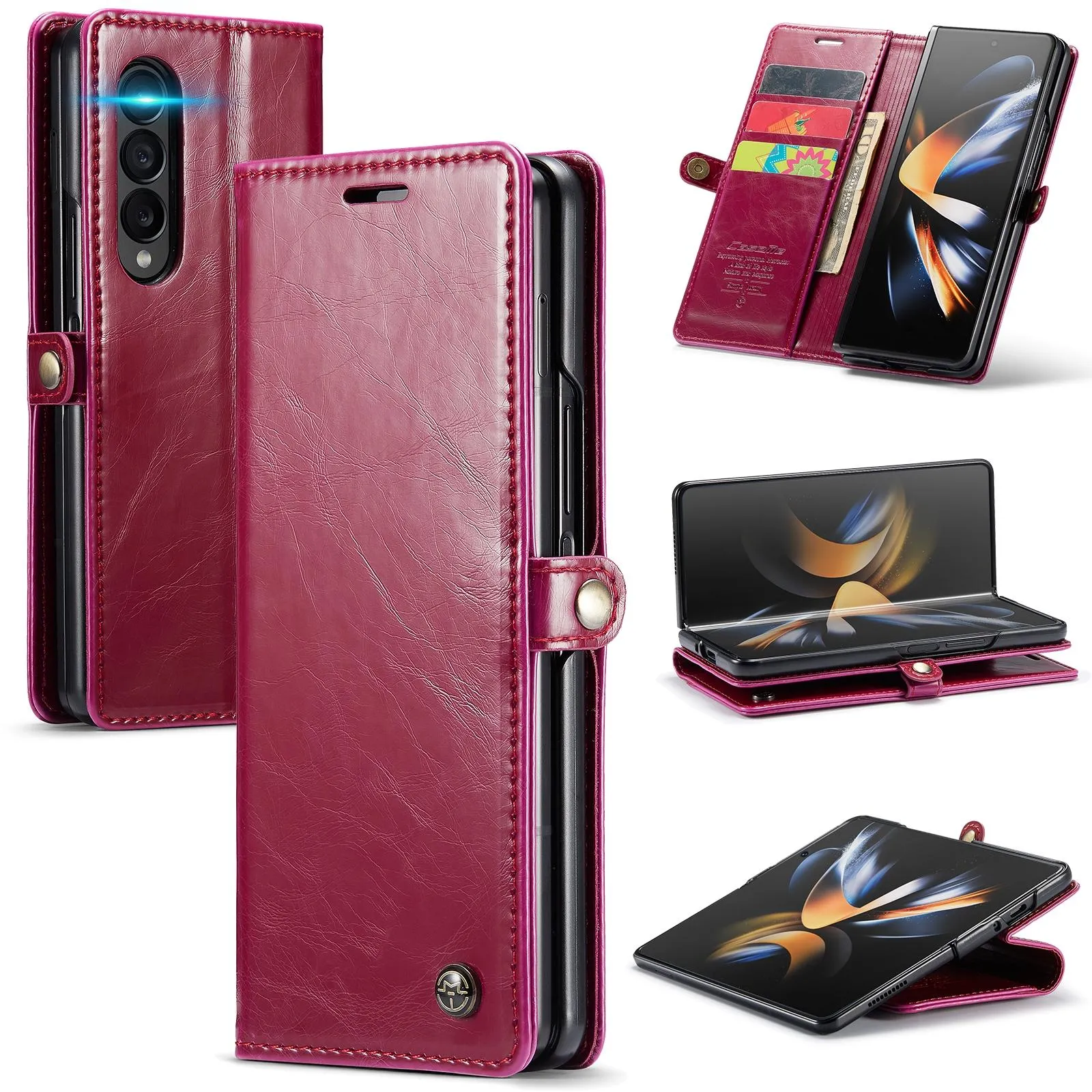 Premium Crazy Horse Leather Phone Case for Samsung Galaxy z Fold 4 - Red