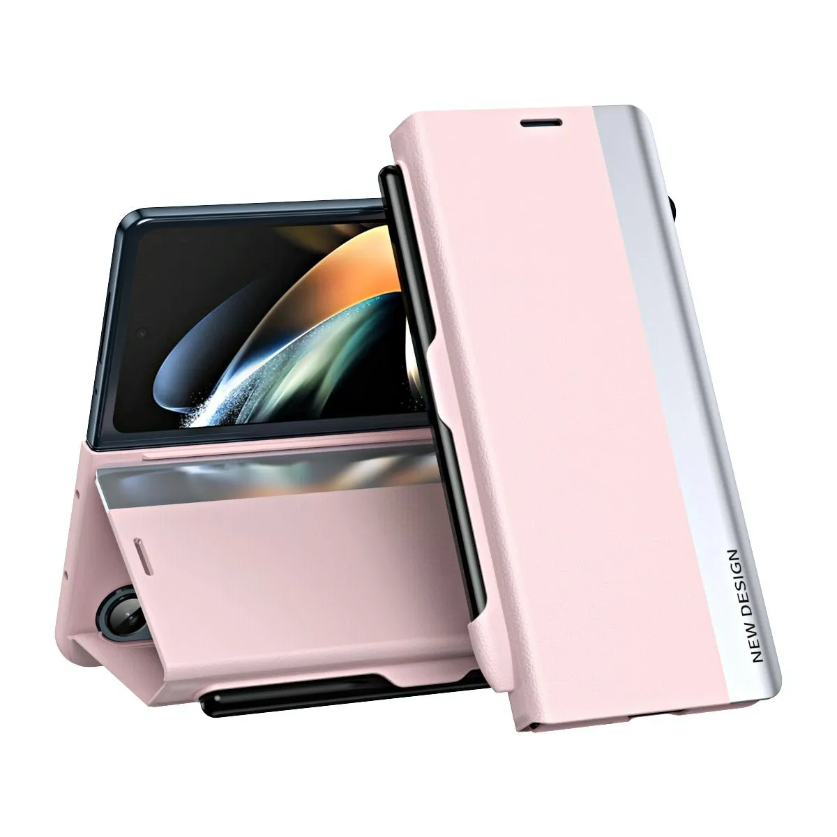 Samsung Galaxy z Fold 4 Leather Phone Case with Pen Slot - Shockproof - Pink