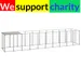This versatile dog kennel makes a great outdoor play paradise for your dogs! The large dog cage provides ample exercise space while the steel wire mesh wall helps prevent unexpected accidents while enabling ventilation. Thanks to the sturdy steel construction, this pet enclosure is durable and built to last. It comes with a polyethylene roof that is water-resistant and UV-resistant, providing protection from sun, rain, snow and other weather conditions. Additionally, the door has a lockable latch which ensures extra security and safety for your dogs.