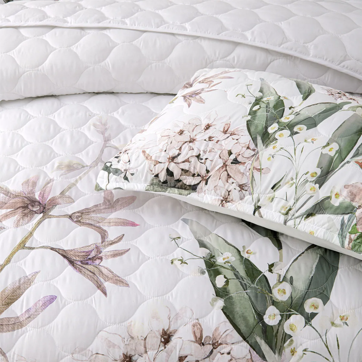 Bianca Lorna White Floral Printed Quilted Bedspread Set (King, Bianca)