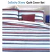 _product_id: 598614Add a pop pattern into your bedroom with this Infinity Navy Polyester Cotton Quilt Cover Set by Apartmento. It features a colourful stripes print design in White, Blue, Navy, and Red colour tones that will create a focal point in your bedroom. It is made from quality and soft touch Polyester Cotton blend fabric with easy care properties.