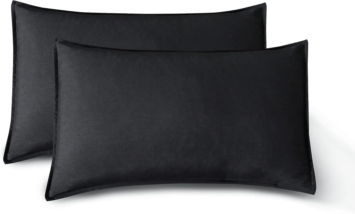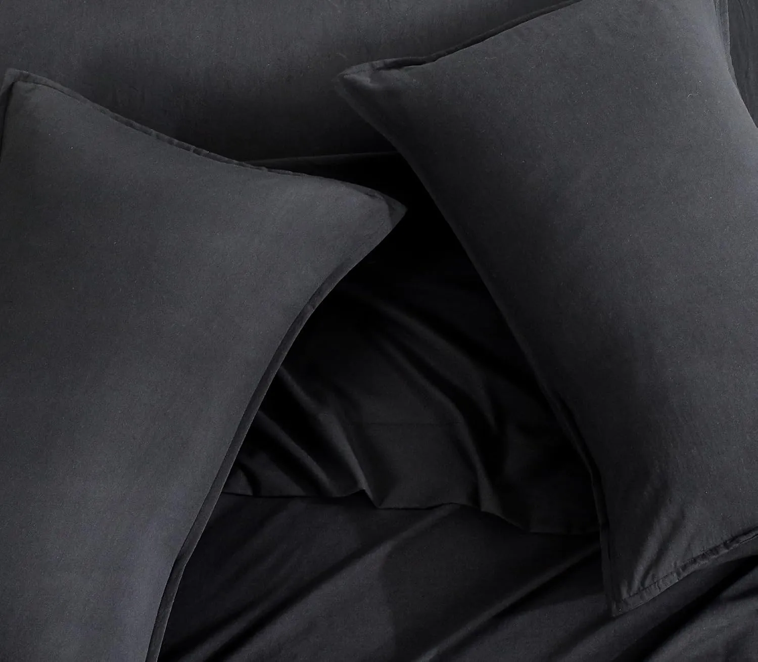 Vintage Washed Microfibre Quilt Cover Set (3Pcs) - Black - Double Size