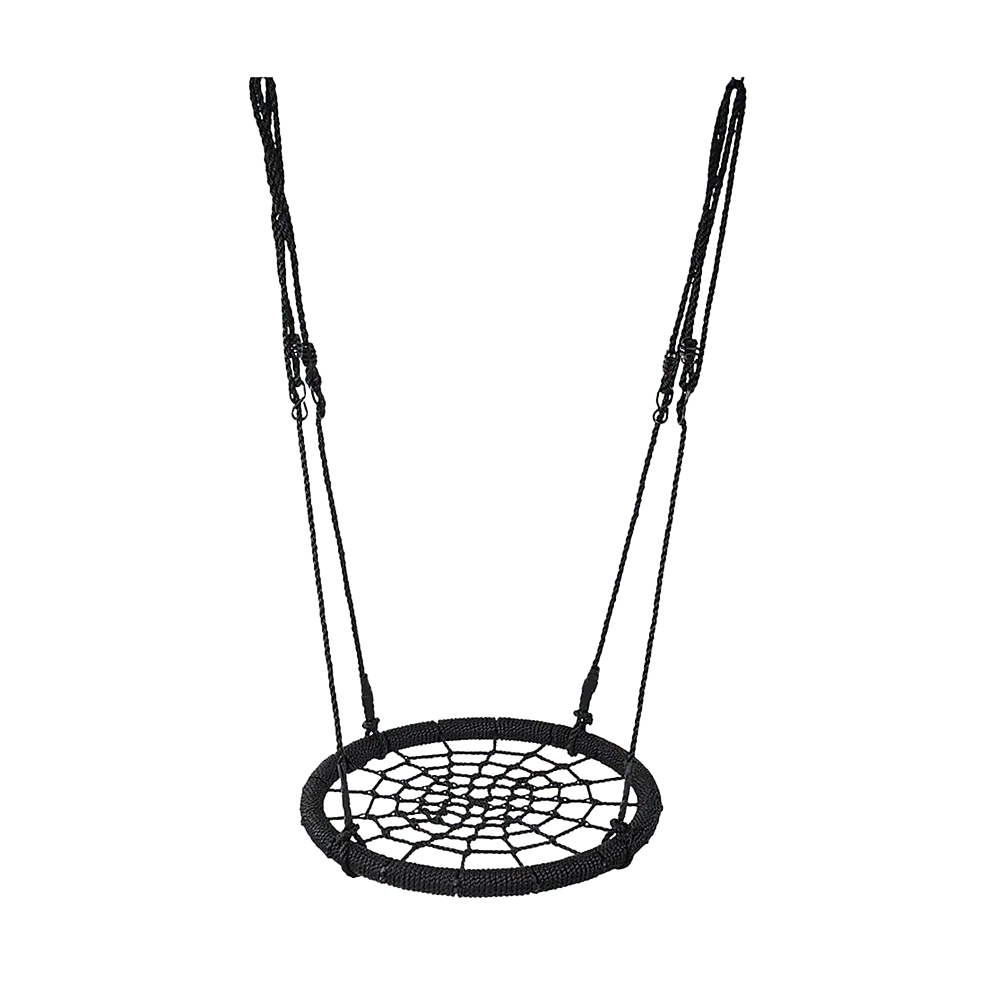 _product_id: 562659If your kids love to play on the swings at the playground, bring the fun home with this crows-nest rope swing from Randy Travis Machinery. With its supportive webbing underneath and strong polyethylene hanging ropes and metal-reinforced O-rings, your children can safely entertain themselves for hours. Designed for children three years and over, its supportive webbing can hold children up to 70kg, thanks to its strong and durable spider web design. And, its black colour blends into the background, adding to the beauty of your backyard.