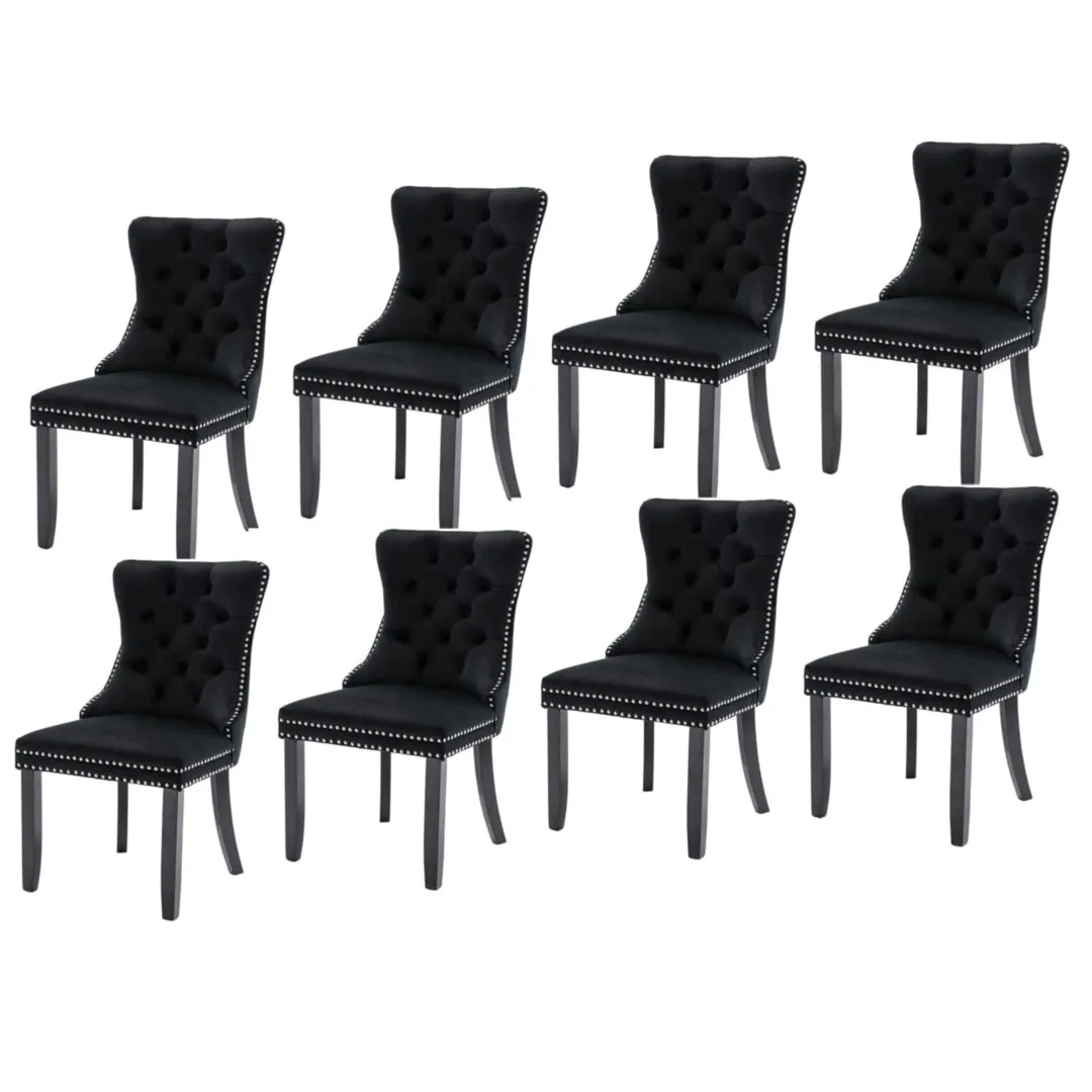 8x Velvet Dining Chairs Upholstered Tufted Kithcen Chair with Solid Wood Legs Stud Trim and Ring-Black
