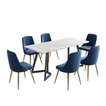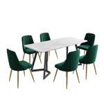 _product_id: 467381Wine, dine, and entertain guests with our meticulously designed Artiss dining chairs. They make a luxurious addition to any dining space and will make your guests envious of your gorgeous dining ambience. Not just for your dining room, these dining chairs are sure to make a statement in your study room, living room, and dressing room. Their versatility and ultra-modern design make them stand out. Incredibly stylish and sophisticated, our Artiss dining chairs feature inner solid wood construction with plush velvet upholstery and a hand-woven backrest that ensures lasting quality. It comes with solid steel legs with an anti-slip feet pad for ultimate stability and to keep your floors scratch-free. The dining chairs flaunt plush seats made with high-resilience foam that offer incredible comfort and support, and the cushioned back support with comfortable armrests allow you to dine with great comfort. Our dining chairs can hold up to 150kg weight, and their reinforced steel fixings make them super stable and reliable. Our Artiss dining chairs are certainly a big bang for your buck. Bring home this luxurious set of dining chairs without any hesitation.