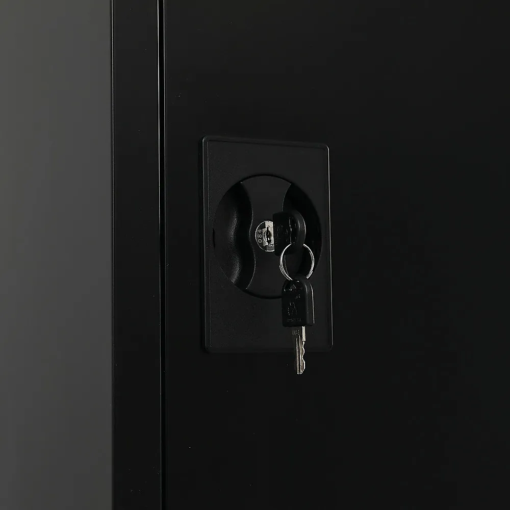 Single-Door Metal Tall Cabinet Shelf Storage for Home Office Gym (Black)