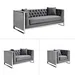 Introducing William Lounge Set of 3, the perfect way to create a stylish and sophisticated look in any living space. This luxurious set is upholstered with velvet black fabric and offers superior comfort as well as impeccable style. The angled legs add an attractive modern touch, while the tufted back gives it an airy and spacious feel. Each seat is generously sized for plenty of relaxation, and it can easily accommodate one or two people for entertaining. Whether you're looking for a cozy spot to curl up with a book or have guests over, this stylish set will provide the perfect balance between comfortable seating and timeless style. With its sumptuous velvet fabric that provides outstanding softness and luxury, the William Lounge Set of 3 makes staying in much more enjoyable.
