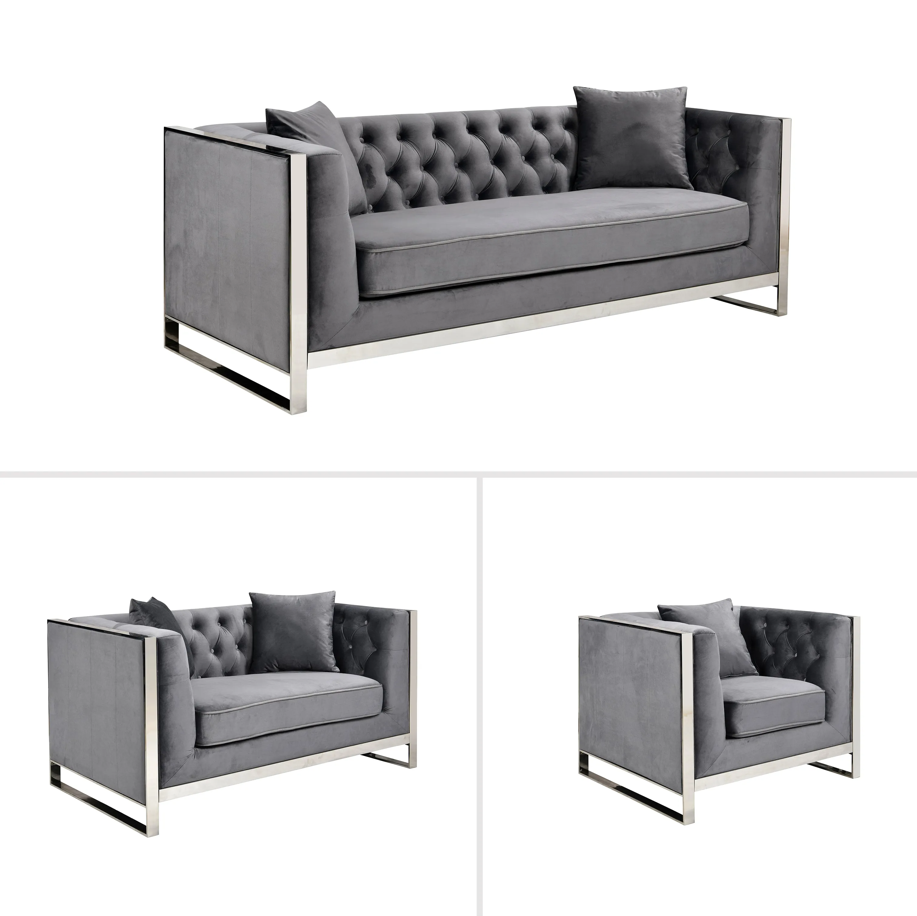 • Tufted velvet seat with Silver Stainless Steel