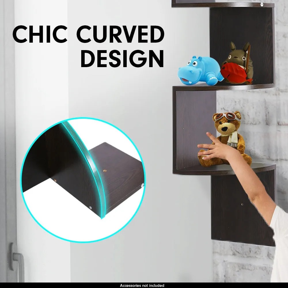 Sarantino 5 Tier Corner Wall Shelf Display Shelves Dvd Book Storage Rack Floating Mounted (Brown)