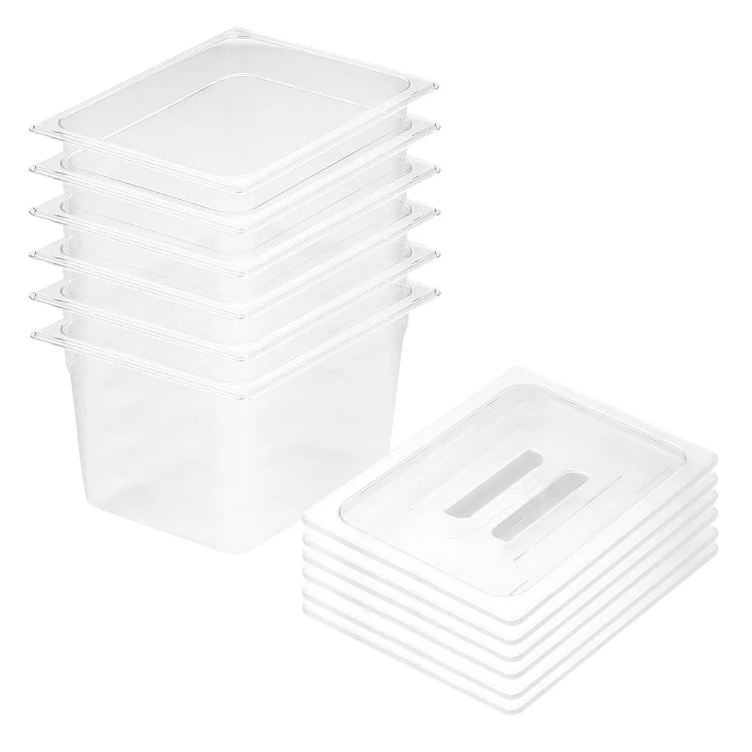 SOGA 200mm Clear Gastronorm GN Pan 1/2 Food Tray Storage Bundle of 6 with Lid