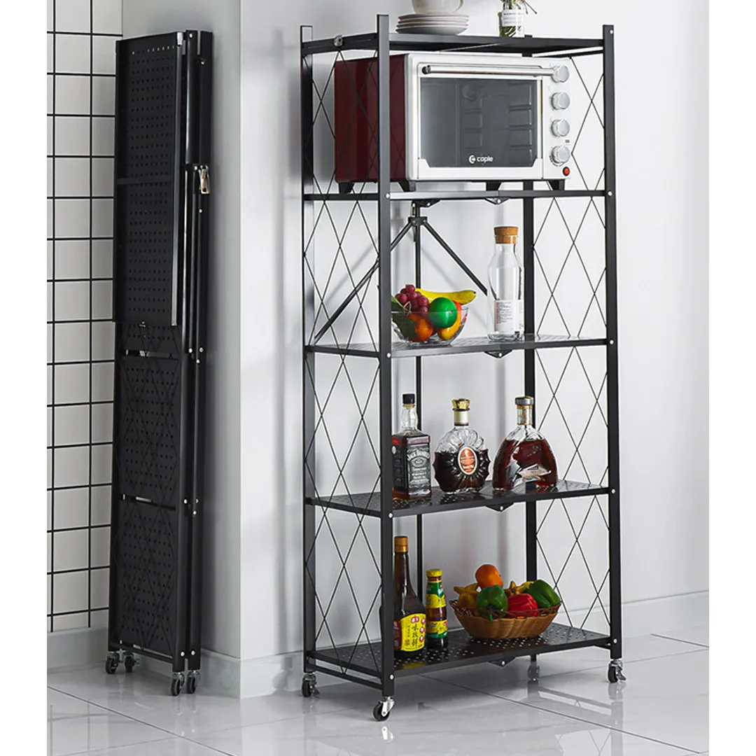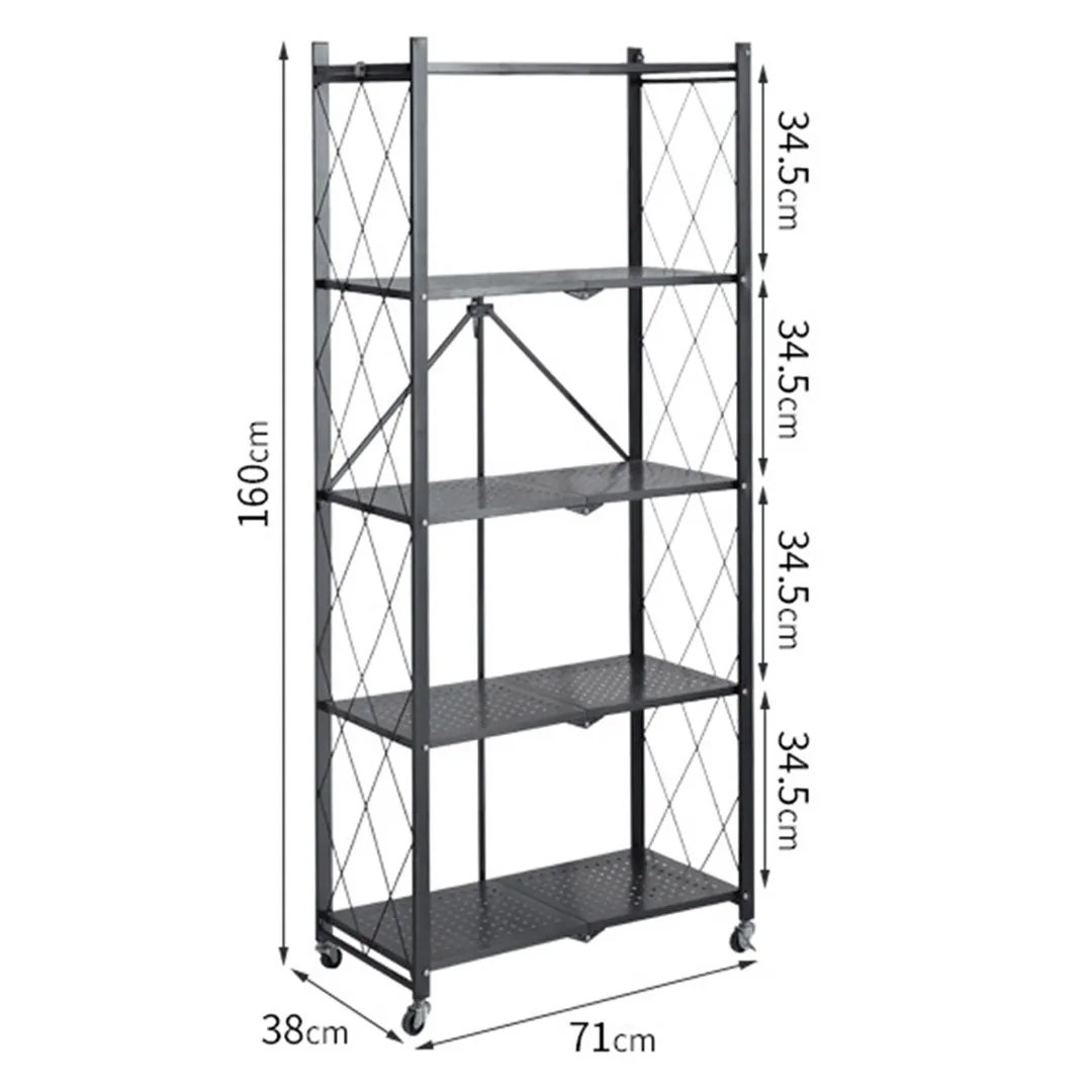 SOGA 5 Tier Steel Black Foldable Kitchen Cart Multi-Functional Shelves Portable Storage Organizer with Wheels