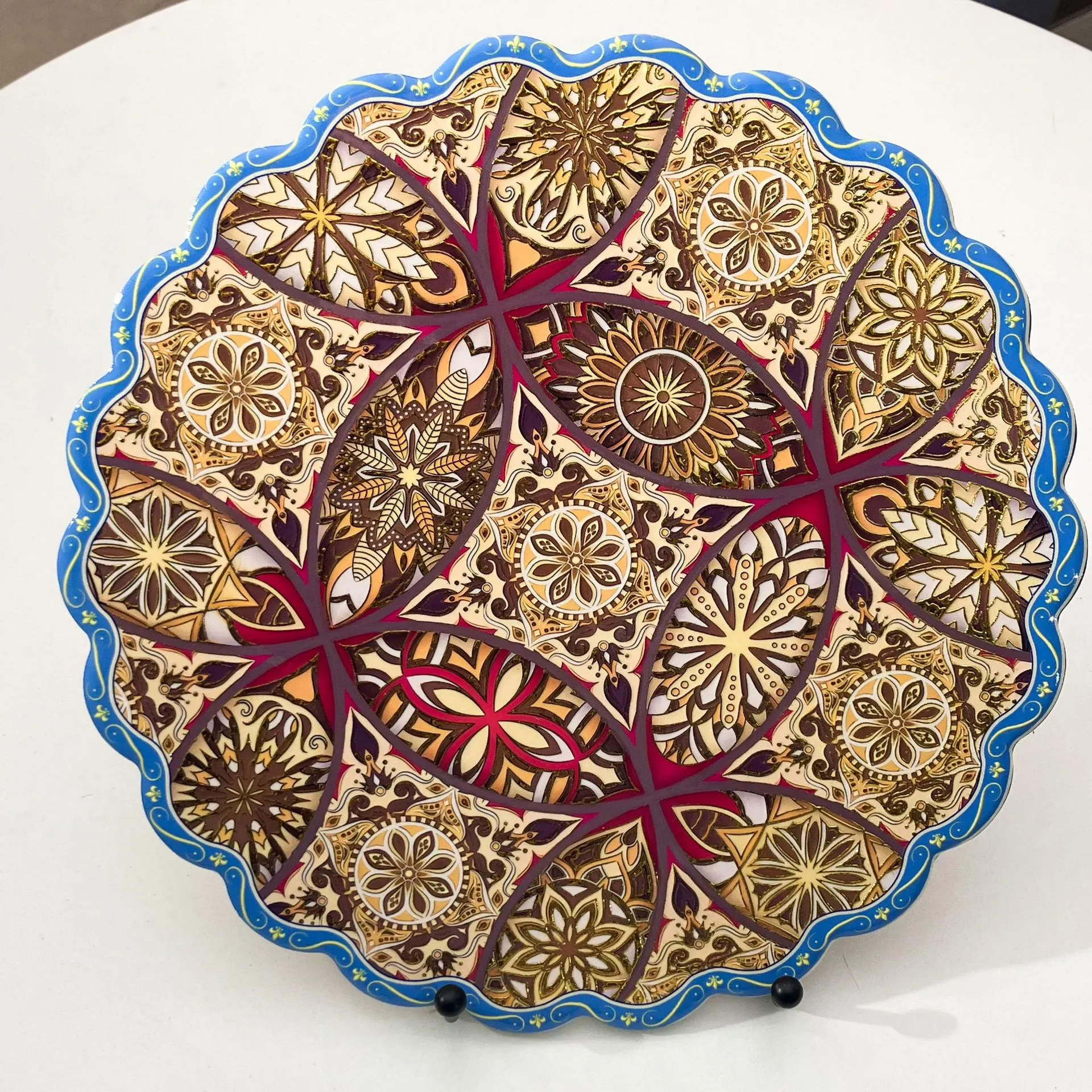 Add a touch of vintage charm and practical protection to your kitchen and dining table with this set of two extra-large round trivets. Featuring intricate Bohemian-inspired designs enhanced with a stunning 3D gold foil effect and elegant lace edging, these mats are as decorative as they are functional.
