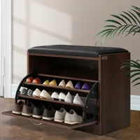 Please note that the quantity of shoes that will fit in the shoe cabinet will vary depending on the shoe size and style.Children have died from furniture tip-over. Always secure this furniture with an anchor device. Never allow children to stand, climb, or hang on drawers, doors or shelves. Never open more than one drawer at a time. Place heavy items down low. Never put a TV on this furniture.